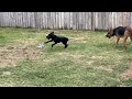 - Cole loves running around the backyard with a toy. He will throw it up in the air and chase after it himself. It is adorable.