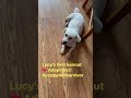 Lucy is learning how to walk on a leash and pee outside-- both things are new to her as she used to just live in a barn.